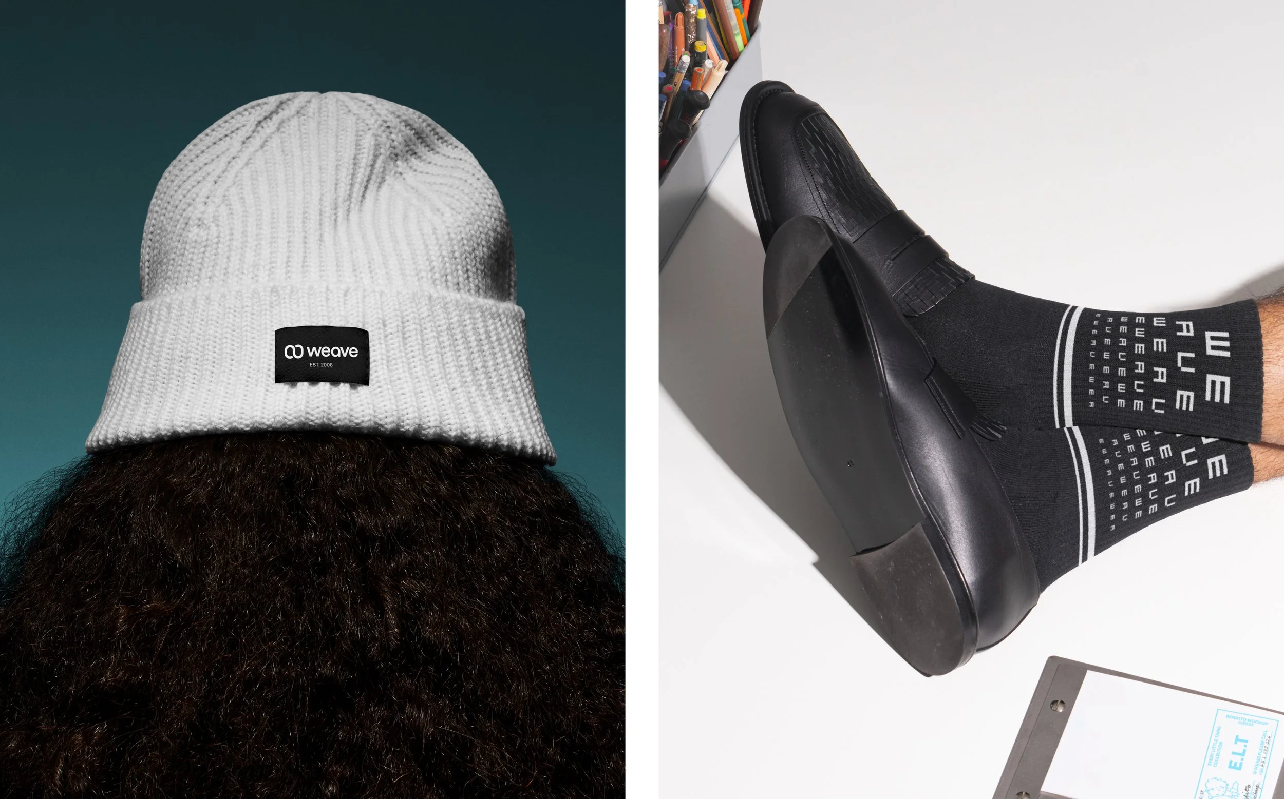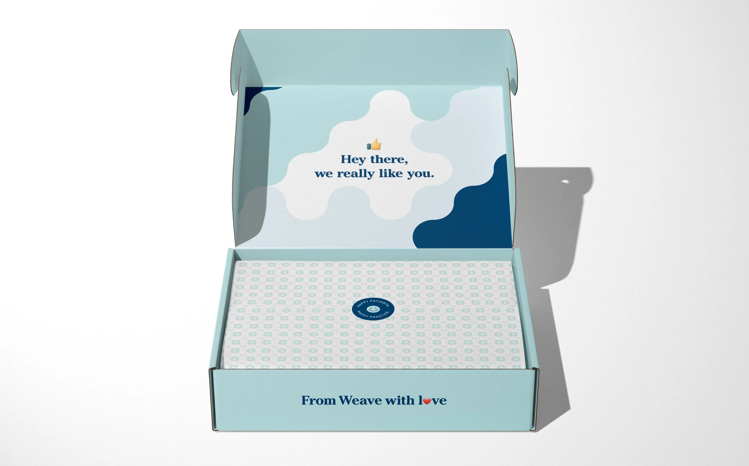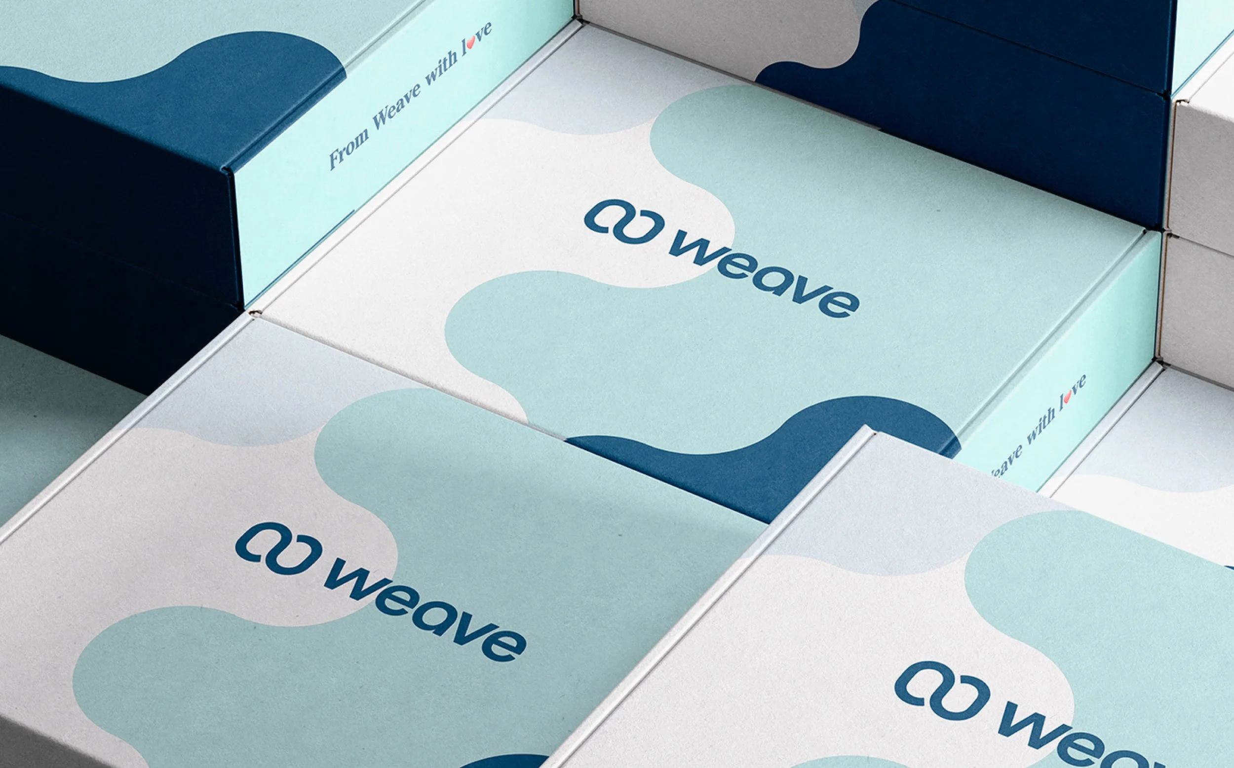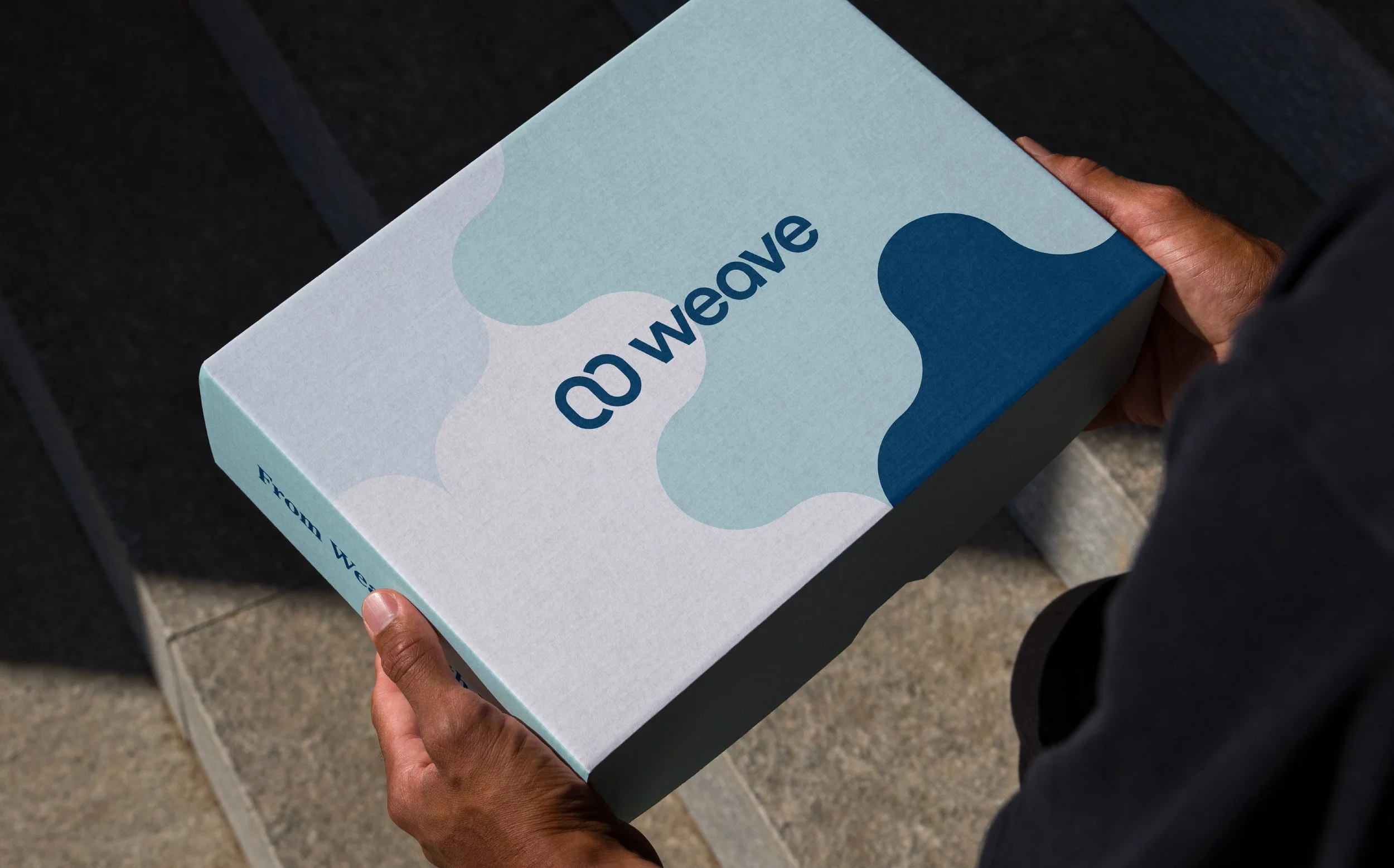 This Weave Welcome Box is a thoughtfully designed swag kit for new customers, featuring a sleek, modern aesthetic with soft blues, abstract patterns, and playful messaging. The premium packaging creates an engaging unboxing experience, with branded items like mugs, socks, and apparel reinforcing Weave’s identity. The design balances warmth and professionalism, making new customers feel valued while introducing them to the brand in a stylish, memorable way.